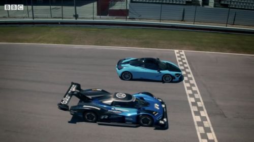 In episode five of Top Gear's 28th season, which just aired February 23, the trio of Harris, Freddie Flintoff and Paddy McGuinness welcomed Youtuber KSI on the show and ventured out on a luxury sports car road trip with an Aston Martin, Porsche, and Ferrari. Separately, Harris took to the track to test out Volkswagen's golden egg of the moment, the ID.R.