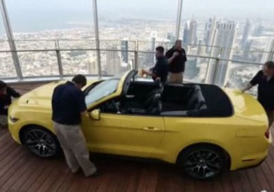 Sun, Nov 23 2014 In 1965, a Ford Mustang Convertible proudly went on display at the top of the Empire State Building, the world's tallest building at the time. Earlier this year, the Blue Oval recreated the stunt by bringing the latest droptop 'Stang to the sky-high structure. Unfortunately, while still iconic, the New York skyscraper has lost the world title. Of course, an automaker can't let something like that get in the way of a good publicity stunt.For the inauguration of the Ford business unit in the Middle East and Africa, the brand gave the 2015 Mustang Convertible an even bigger building to climb – the biggest in fact. The droptop made its way to the 112th floor of the Burj Khalifa, the world's tallest building. To put a final topper on the whole event, executive chairman Bill Ford was the one to place the car's famous badge, making it complete.