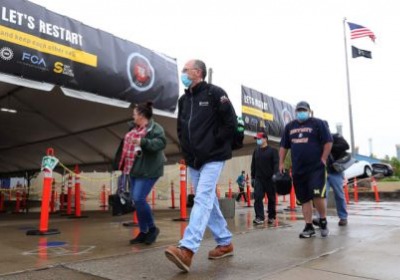 On a chilly and damp Monday morning, hundreds of workers at Fiat Chrysler Automobile's (FCA) truck plant in Warren, Michigan, began lining up before 4 a.m. to start the 5 a.m. shift. Signs overhead read: "Let's restart."