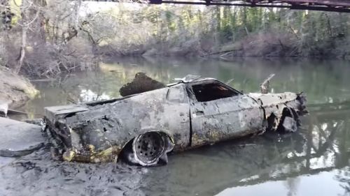 Watch divers pull 1973 Ford Mustang Mach 1, Mazda RX-7 from a river