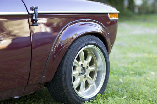 The car sits on Minilite replicas in 15X7.5 size with 0 offset - the grip is out of hand for this light little dude! Tires are new 205/50/15.