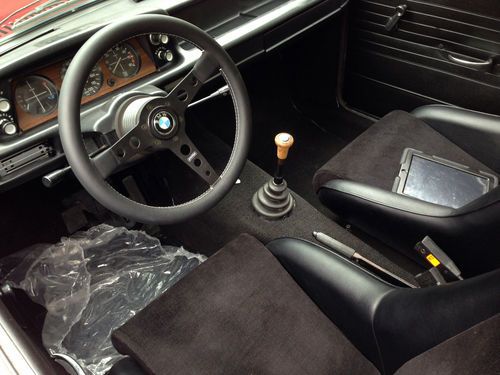 The interior has new carpeting, new vintage racing seats with custom lower mounts, and refurbished door cards. I also threw in a new Momo Prototipo Steering Wheel. You'll notice I removed the center console which makes it look much more "purposeful" - the look reminds me of a Porsche 914/6 race car I fell in love with. I fitted the earlier round-style shift boot which required the fabrication of a mount on the transmission tunnel. The shift knob is the BMW wood knob.