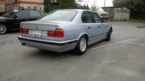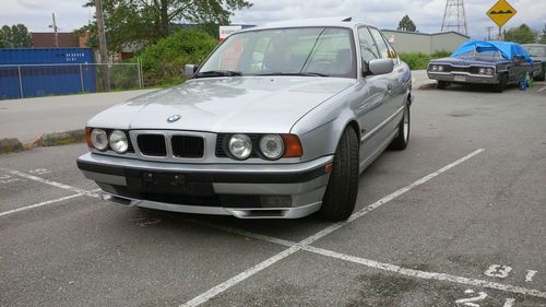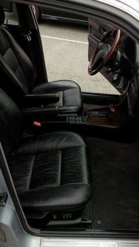 Silver on black 1994 BMW 540i with a 5sp automatic transmission. This car has only 70,000 accident free kilometers on it, yes only 70,000 km or 43,800 miles. Originally out of Japan, this second hand left hand drive 540i has an upgrade dual climate control, keyless entry and a rear roll up shade just to name a few extras that were not available in North America. The car also has the upgrade BMW three spoke wooden steering wheel with airbag to match the wooden trim interior. The black leather is in great shape, no rips, tears or fading.