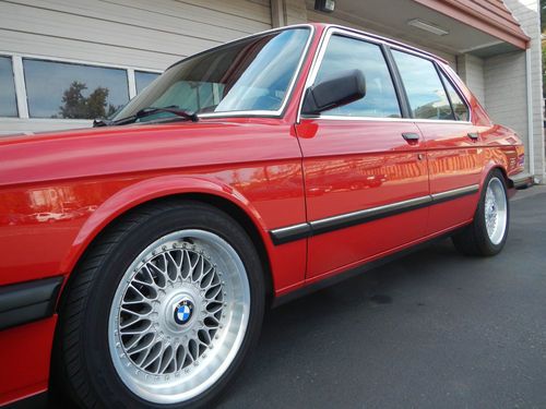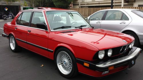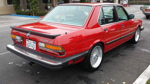 hello here is a clean example of BMW 535is original!!!! this car is a beauty hands down this is the best classic BMW every time I take it to the show. I get compliments all the time. It's been covered and garaged its whole life. here is what you need to know about this car. I have a huge file of services dated 10 years back. that the original paint, every thing works on it, all stock except the radio, alpina steering wheel (I have original one) and its lowered on tein springs and bilstien shocks. tires are fairly new, I holds a clean California title. I has only been in California there is no rust any where on the car. some flaws I have an extra transmission for it if you want it. extra fuses and window switches extra coolant reservoir. |