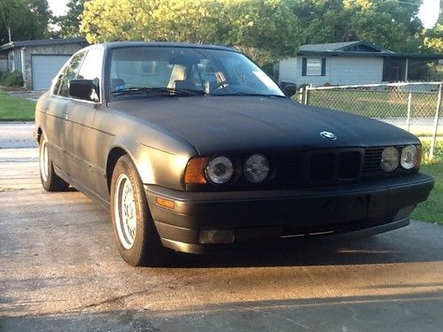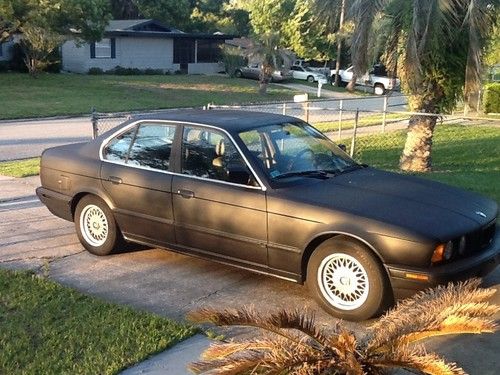 You are bidding on a 1990 BMW 535i, this car is decent shape for what the age is. The car has 203k miles on it, since I have had it I put 10k miles on it. With the inline 6 cylinder engine it has a lot of power and torque for merging on to highways. The lights work as well as the fogs, high beams and low beams, left rear taillight is cracked, so that brake light does work but needs to be fixed. All the windows and sunroof work as they should, most of these cars have been known to have broken sunroofs so its a PLUS that this one works. A/C has a leak in it will work after some TLC. Was charged two weeks ago and blew cold air for about two weeks. Drivers seat has tears from getting in and out, all other seats are in pretty good shape. This would be a great first car for someone who is in school, or who would like something to work on. This car is originally red but it has black plasti dip paint on it.( you can ask about it) I have explained this car as best as I can. IF YOU HAVE ANY QUESTIONS PLEASE ASK! I AM A PRETTY NICE GUY I WILL GET BACK TO YOU!!!