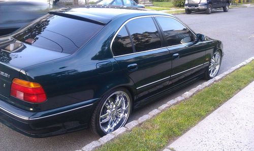 the bimmer is 1997 bmw 528i is running in excellent condition.i had it passed inspection and clean inside and out. i had the car since april of 2005 and kept up the maintance. i did a few upgrade from stereo pioneer n4 radio,navigation,kicker eq,blutooth.sirus,ipod and back up camarea. the door speakers and rear deck is apline,8" lanzar subwoofer and the 12" alpine subwoofer in a ported box. two hifonic amps and extra optima batteries to run the system. 19" giovanna wheels, staggered wheels lower spring and tires in excelllent tread condition. i changed the headlights to hid and the mirrors to power m5 folding signal mirrors.also rear roof spoiler. it has remote start for the hot summer and cold winter. the bimmerlook nice and run to perfection.