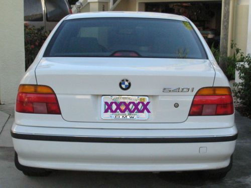 We are putting up for auction a senior driven 1997 BMW 540i. The car has never been in an accident. It has the original paint. Exterior condition is 9 out of 10. Interior condition is 9 out of 10. It has new brakes, new hoses, 5000 miles on (all four) new Bridgestone tires. The car has been serviced and cared for by the local BMW dealership in Naples, Fl. The cars runs great. Everything works with the exception of intermittent operation of the radio (I think it is a loose antenna or ground wire). This is a car that has to be seen to be appreciated. It is spotless and has been meticulously maintained. If any questions my cell number is 708-369-8007. It has a clear title. Prefer cash only transaction but will accept cashiers check. |