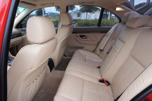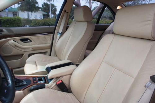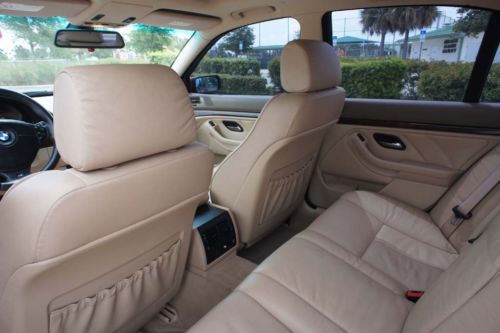 Beautiful 2000 BMW 540i sport. Fantastic and desirable 540i, runs like bullet and looks like $50k. Great pedigree and shows only minor wear. Non-smoker Florida car, still smells like fresh BMW leather inside. Perfect dry car. Must be seen and driven, feel free to call and end auction early. Car will need two tires eventually, left rear window is in up position and wont go down (worst case is a regulator), a few pixels in the cluster and radio area are out but miles can be read and guaranteed. This is Palm Beach Auto Groups "wholesale to the public" division. office phone 561-243-1290 or 24 hour internet line 213-373-5180 or email 24/7 to sales@pbautogroup.com Winning bidder is responsible for tax, tag and title and a $199 doc fee. Shipping available and at buyers cost.