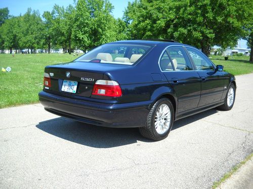 HELLO I HAVE A VERY SHARP 2001 BMW 530I. THIS CAR COMES WITH THE 3.0L V6 ENGINE IN IT. THIS IS A 5 SPEED CAR. THIS CAR HAS A VERY NICE SHINE ON IT. THERE IS NO RUST OR ANY DENT'S ON THIS CAR. THERE ARE A FEW MINOR SCRATCH'S ON THE CAR. THE INTERIOR IS IN VERY NICE CONDITION THERE IS NO RIPS TEARS OR ANY MAJOR STAINS ON THE SEATS NOR THE CARPETS. THIS CAR COMES WITH POWERED WINDOWS, LOCKS, MIRRORS, AND SEATS. IT ALSO HAS A SUNROOF WHICH IS A PLUS. IT ALSO HAS THE FACTORY RADIO WHICH INCLUDES AM/FM RADIO AND A SINGLE DISC PLAYER. THIS IS A VERY SHARP CAR FOR THE MONEY. PLEASE STOP BY OUR WEBSITE AND CHECK OUT OVER 50+ PICTURES OF THIS 2001 BMW 530I TODAY OR GIVE ME A CALL AT ANYTIME 216-671-1414 ASK FOR RICH