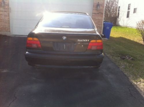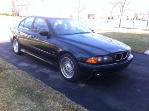 1999 BMW 528i - Black on Black with sport package. Super low mileage for the year at 105,000 miles! Recent repairs: New radiator. New fan shroud. New fan clutch. New water pump. New coolant return pipe. New thermostat. New thermostat housing. New drive belt. New A/C belt. New valve cover gasket. New spark plugs. Repaired power steering fluid leak. Fresh oil change and new coolant. New flex disc on drive shaft. New wheel speed sensor in rear. New front brake pads and rotors and wear sensor. New rear brake pads and rotors and wear sensor. New left front inner door handle. No tears in seats, no major damage on body. Tires are in good shape too. The bad: Paint could use some scratches touched up but nothing major. There is a small rust spot on rear lower corner of left rear door. There is another small rust spot below the right rear door on the rocker panel by the wheel well. Both spots can easily be fixed by a body shop. Beautiful car that is ready for its next owner! |
