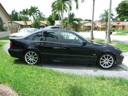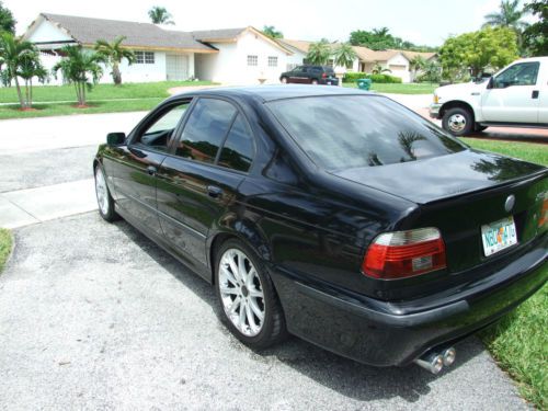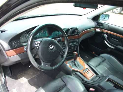 Up for sale is a very well maintained 2000 BMW 528I with an M5 Package. Only has 107k miles. Please click on this link to view more pictures http://s1286.photobucket.com/user/rod09170912/media/DSCF9992_zps815d8d4d.jpg.html No Reserve auction. Highest bidder buys the car.. I will not end the sale early...Please ask any and all questions before bidding.. The car is sold AS IS.. Clean Title... I have all the service records for the car. The engine is a 2.8 liter.. Straight 6... and is running great.. Automatic transmission shifts like it should. The rust anywhere...100% rust free The tires are almost new. I would say they have over 80% of life left in them. Car also comes with a bra and car cover. Air conditioner is ice cold. sunroof , windows , locks , radio and cd changer are working. The exterior paint is very shinny and in great shape . It has its minor dents and scratches like any other used car. Very minimal but just want to make sure no one thinks its perfect. the worst scratch is the one on the hood. The car is original paint except the front and rear bumpers. Interior is also very clean . The drivers seat has some ware on it. It is missing a plastic for the center console. I will have them installed before the sale ends. The car is very clean and a real head turner. But remember that it is not perfect. I have tried to mention everything. If you feel that i have left something out. Please ask. it is not my intentions to do so.