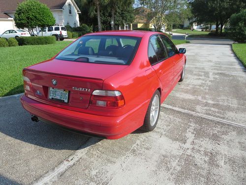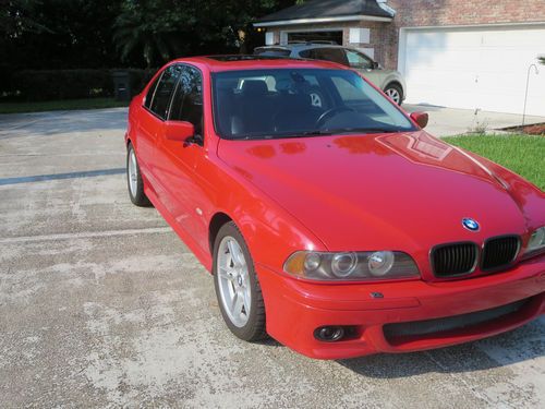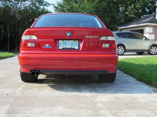 540i E39 with the M sports package and manual transmission is one of the best BMW's ever made, fun to drive, smooth quiet on the highway and also like a sports car when driving on back roads, The M Sport package has lowered ride height, stiffer swaybars, sports seats, 17" M wheels. The manual is a lot faster then the automatic. Amazing condition for the year and mileage. Look feels and drives like 52kmi. Much nicer then some cars with half the mileage, Driver side bolsters still tight, no rips or cracks in the leather, I have conditioned the leather every three months, Only used Mobil1 and BMW factory oil filter since I have owned it, In the last 5 years all normal 540i issues taken care off, new radiator, new overflow tank, new water pump, new upper radiator hose, new electric fan, new lower dash segment to fix missing pixels, new front lower control arms, new upper control arm bushings, new cam pos. sensors,new EVAP purge valve, No warning light or missing pixels anywhere, plus a few selective enhancements, cross drilled rotors, M5 front bumper with modified under tray, hood painted at the same time to fix rock chips, rear spoiler, black front grills, this with the bright red paint makes it look great, gets lots of positive comments.