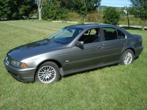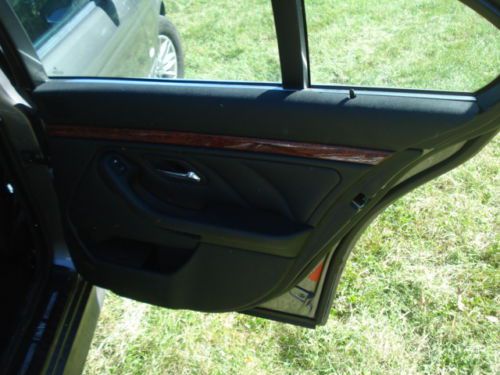 This is a 2003 BMW 530i sedan with a 5 speed manual transmission. This vehicle has a new clutch, front brakes and service. It runs and drives very well and everything works. There are no warning lights. The switches show no wear. The glass is good. It has the factory manual. The interior is very good with no rips or tears. It is a non smoker vehicle. The body is good. There is a small crease on the right front door. There is a half dollar spot of rust at the bottom rear corner of the left front door. There is a small briefcase scratch on the trunk and hood. The trunk has the spare and jack. The alloy wheels are good and the tires have 50% tread. The rear bumper cover has several scratches. Overall, this is a very solid good running BMW. Please call (314)) 378-3109 with any questions.