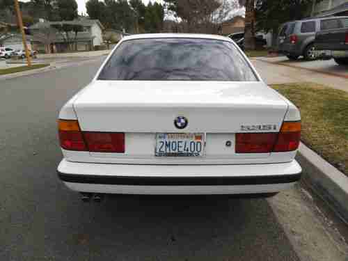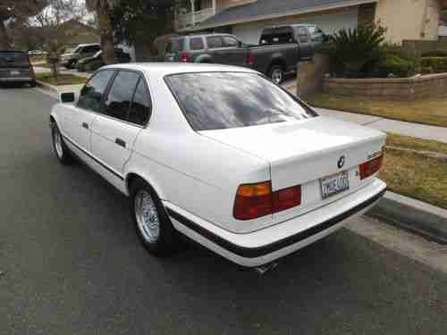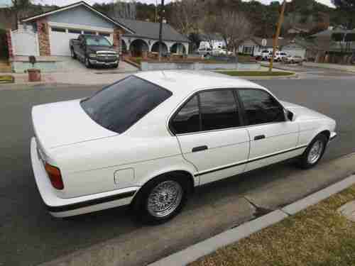 I have a one owner 535i in mint condition, inside and out and looks like it just came off the show room floor. It has been garaged it's entire life and in an underground carport or coverd the rest. It is in perfect mechanical condition and just fully serviced with plugs, adjusted valves, water pump, radiator, thermostat, fan clutch, belts, all filters, new brakes front and rear, hoses, fluids, trans service, front bushings, tires etc. I hate to get rid of her, but I bought a new car and she no longer has home inside. She is Alpine white outside and buckskin inside and has hard to find factory chrome rims with a full sized spare. I just tinted all the windows, detailed her completly and everything on her works.. The ONLY problem with her is the radio volume knob is a bit scratchy when you adjust her. Paint is in PERFECT condition and no accidents, rips, tears or even discolorations or cracks in the leather, paint or anything. If you are looking for a creampuff, look no further. Please serious inquiries only. For anymore info, email or call me. 818-625-8211 I have inside outside, underneath what ever pics you want upon request. Thanx