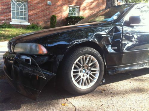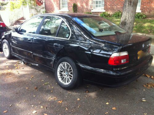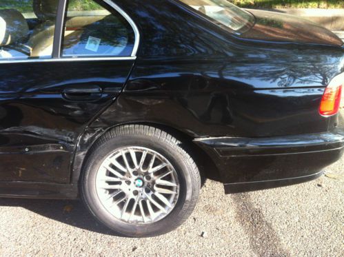 2002 BMW 530i E39 damaged left side (was off and parked during impact) ,broken left rear arm ,all doors are open/close fine, all glass,mirrors and airbags are in tacked,runs and drives not to far. All lights are working, A/C blows cool,full size spare tire. Recently installed new flex disk Fibi, center support bearing,front stabilizer links and motor/trans mounts Lemforder. Great restoration project or parting out. Will assist to deliver with in lower 48 for buyer's expense. Vehicle sold AS-IS where is. |