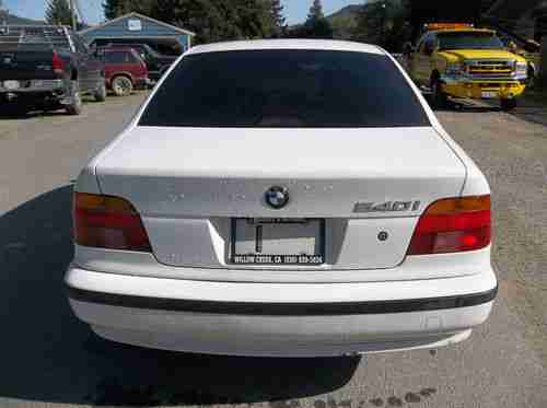 Buddy's Auto Center Towing & Recovery has for sale this 1998 BMW 540i. it has a dent in the rear quarter panel and on the rocker panel. The tires are good. We have this for sale with California lien papers. Most states will not take lien papers. So check with your state DMV. California lien papers are like a title in California. At this time there are no DMV penalties due. It states on the lien papers that next registration is due in approx 60 days and it is $129.00. The vehicle is very clean inside and things work properly. We are a tow company not a car dealership. We are not responsible for smog . There are no warranties. We have driven this vehicle and feel that it is a roadworthy car. You should check out vehicle for yourself before bidding. We are located at 39421 Hwy 299 in Willow Creek Ca.. 100 miles west of Redding on Hwy 299. we are open from 8-5 Monday through Friday. If you need to call to see if car is still available call 530-629-3175 only. before 8 and after 5 there will be no answer. Do not call for questions on vehicle you see the pictures. If you need more details come see the car in person.
