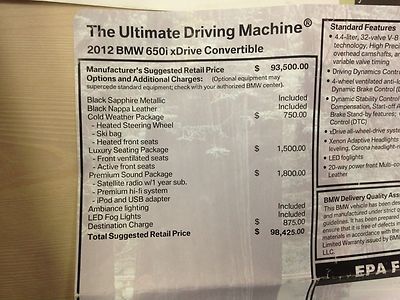 2012 bmw 650i convertible $111 + msrp m sport drive assistance bang & olufsen(US $72,800.00)