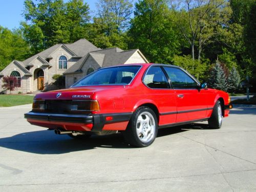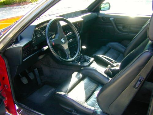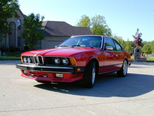 1986 BMW 635 / 2 door coupe / Red color / moon roof Engine: 6 cylinders Transmission: Manual 5 speed Mileage: 70,200 original miles Immaculate condition with absolutely NO RUST. Always garaged, never been in the snow or rain. I have owned the car for the last 8 years and have only driven about 3,000 miles. The car has a stainless steel exhaust which gives a very nice subtle sound. Tires: Front: 235/45ZR 17 and Rear: 255/40ZR 17 with 95% tread on them. Wheels: 17 inch. The original wheels go with the car. I never thought I would sell the car, but since I am moving I cannot keep it. At one point I thought to improve the performance of the car with a better cylinder head, valves, large diameter throttle body, performance chip, etc., but never did. The car is completely in original condition. Over the last few years I bought many spare parts, just to mention a few: