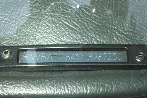 Driver side door picture number 22 reflects the Mfg Bayerische Motoren made in Germany and the vin is reflective on both right & left front fenders & dash board (pictures number 19, 20, & 21).