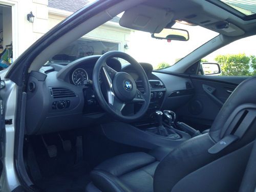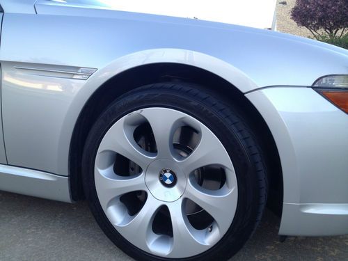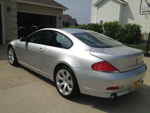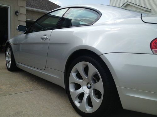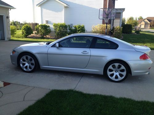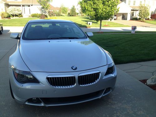 2005 BMW 645 CI, 6 speed manual transmission, V8. Runs fabulously, handles beautifully, plenty of power. Silver Metallic paint. Low mikes, 60K. Sport Package. Heads up Display, Cold Weather Package. Navigation. Adaptive Headlights (move left and right as you turn the wheel); Voice commands; Bluetooth; Premium Sound Package. Parking Distance Control. Serviced Recently, new battery. 3rd Car so driven only in decent weather, its not been driven in the winter/snow. There is a small door scratch on the passenger side (see picture). 2 owner car, I've owned it for almost 5 years and its the first car I've owned for more than 2 years. It turns heads and people comment. Selling to buy newer M6.
