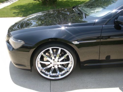 It is a Very PRISTINE BMW 645CI WITH BEAUTIFUL BLACK PAINT, LIKE NEW BLACK LEATHER INTERIOR , Over $14,000 IN EXTRAS - CHROME 'STRUT' PACKAGE, 21" WHEELS , HIGH $$$ 'STRUT' GRILLE, 'STRUT' BODY EMBLEMS, LIKE NEW PERFORMANCE TOYO TIRES. 295/30/21 ON BACK, 255/30/21 ON FRONT, UPGRADED STEREO/DISC PLAYER/SPEAKERS! AN AWSOME RIDE! A/C is 'ice cold', Excellent condition, All scheduled maintenance, Always garaged, Custom wheels, Factory GPS system, Fully loaded with all the Goodies+, Looks & drives great, Must see, Never seen snow, Very clean interior, Seats like new, Title in hand, Upgraded sound system, Well maintained. CAR IS FROM TEXAS, NO SNOW OR SALT, ALWAYS GARAGED, COVERED UP WITH SOFT BLANKET AT ALL TIMES. CAR GETS LOTS OF COMPLIMENTS, RUNS AND LOOKS 'AWESOME'. MUST SELL, THANKS FOR LOOKING!!! SELLING AS IS Additional Pictures of Any certain areas upon request, Car is Available for Immediate Inspection at any time> Please Feel Free to Call for any more Info..> This Auction can End at ANY time, as it is listed as "For Sale Locally". Thanks For Looking, and GOOD LUCK!! |