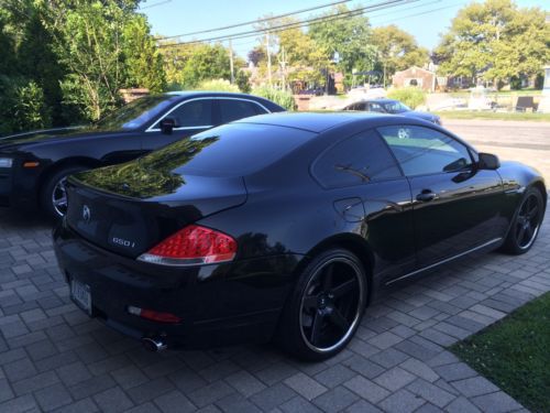 Hello selling my 2006 bmw 650i black with black leather interior,custom 20inch staggered wheels black with chrome lip,fully loaded with navigation,DVD,pano roof,front and rear parking sensors all the other goodies these cars come with,the car has 122k miles but you would never guess it from the looks and drive of the vehicle with the majority of them being highway miles,the car literally drives like brand new and shows very little wear in or out no dings dents or major scratches anywhere interior is flawless and absolutely stunning the glass roof being my favorite option,the car has was just serviced and is perfect there are no warning lights or indications at all on the dash no check engine lights,tire pressure,or any service light at all I can't stress enough how good this car looks and drives, it has a clean title and car fax no accidents or damage always garage kept and needs absolutely nothing black on black beauty truly a great car real head turner