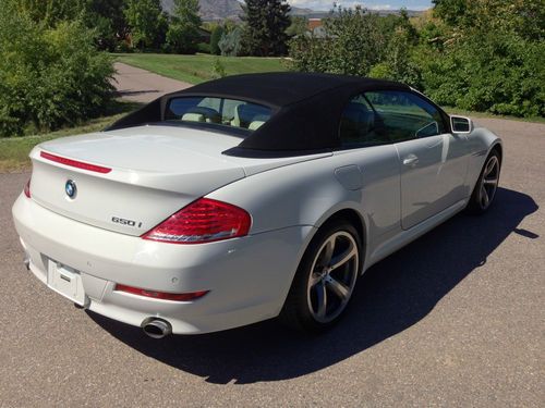 Up for auction is an immaculate 2 owner 2008 BMW 650i Convertible with less than 40k original miles. This 650i is still covered under the extended factory warranty until December 2014 or 100,000 miles is reached and is fully transferrable. All of the service has been performed at my local BMW dealer. The car has been garaged its entire life and it shows. The top is in perfect shape along with the leather interior. The paint is in near perfect shape with only a few VERY minor blemishes. This BMW has never seen bad weather as long as I have owned it. The car is loaded with very nice options including but not limited to; Sports package, keyless entry, bluetooth capable premium sound with aux input, sport automatic transmission, navigation and maplewood trim. The tires are almost new Michelins. I have 2 keys for the car. I also have BMW battery tender included in the sale.