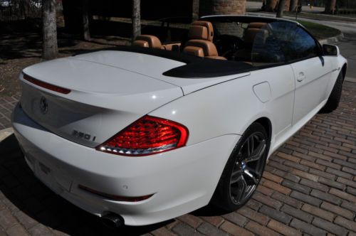 Gorgeous ALPINE WHITE on a SADDLE BROWN leather 2010 BMW 650 SOFT TOP CONVERTIBLE SPORT PKG upgrade in SUPERB condition .... Gorgeous car!!!!!!!!--. Only 24,332 miles........Has the M SPORT upgrade package which includes SPORT seats as well as a SPORT bumper and a SPORT wheel bag................... 4.8L V8 engine with variable valve timing and variable intake lifts and a dual exhaust system............................Am/fm/cd.............SOFT TOP RETRACTING CONVERTIBLE ( see pics)..........Power windows......Power mirrors............Push Button Start.......GORGEOUS WOODGRAIN INTERIOR TRIM PACKAGE..….RAIN SENSING WINDSHIELD WIPERS which is camera based behind the windshield which senses any drop of rain and automatically activates wipers.................Leather wrapped steering wheel.........BMW premium sound.....GORGEOUS upgraded 20" BRAND NEW M SPORT wheels with BRAND NEW TIRES--These are M6 style wheels........... ...............Premium ADAPTIVE XENON headlights which swivel to your steering wheels every turn and are a great night safety feature ( Retail for over $2,800 each dealer price)..........M Paddle shifters which also are standard on the sport package...........POWER FOLD mirrors which fold in/out with the push of a button and are great for ATM's and car washes...............Features the very hard to find FRONT & REAR ultrasonic park assist sensors which are great for the vehicle whereabouts whether approaching a vehicle or objects............... Beautiful SPORT EDITION HEATED SADDLE BROWN LEATHER SEATS in super condition and include the very hard to find retractable thigh support (see pics)...................Fog Lights................Cruise control........Stability control.........Steering wheel controls..............This vehicle is in superb condition and looks GREAT!!!..In awesome awesome shape!!!!..........Absolute gorgeous color combo and is a must on any BMW and just plain looks amazing!!!! ***********Note: Please do not place a bid on these vehicles and ruin our auctions and a fair chance for other bidders unless you have been PRE-APPROVED by your bank/credit union for financing on a REBUILT title...This is a NO TOLERANCE policy and you will get reported to Ebay for non payment!!!************ THIS IS A NO RESERVE AUCTION WHICH MEANS HIGHEST BIDDER TAKES THIS GORGEOUS BMW 650 CONVERTIBLE HOME!!! This Gorgeous 650 CONVERTIBLE SPORT will come with a REBUILT TITLE due to a theft claim a couple months back---NOTHING was damaged or stolen on this gorgeous vehicle and is in MINT CONDITION...ONLY reason it was salvaged was due to the fact of the insurance co. having to pay off the vehicle to the owner......Auction pics when purchased from the insurance co. available upon request...................Vehicle has since been stated inspected and issued the REBUILT title mentioned above which is just as good as a clear title but with a salvage history and can be registered anywhere in the U.S or CANADA.......................Similar clear title vehicles (2010 BMW 650 Convertible SPORT) with similar options and mileage retail for over $53,000 in which you will get this vehicle for much less with the NO RESERVE auction. Feel free to call with any questions 248-255-1164 (Michael) Will ship your vehicle to your desired destination anywhere in the states at dealer discounted hauler/freight services. Areas are as follows which include neighboring/surrounding states as well. N.Y area- $550 Florida area- $650 Texas area- $800 California area- $950 This vehicle will come with a FREE 3 months/4,500 mile POWERTRAIN warranty which includes ENGINE/TRANSMISSION/ALL MAJOR COMPONENTS AND SO MUCH MORE and is once again FREE OF NO CHARGE TO YOU! Extended warranties available upon request as well. Note: Please note that when bidding over $25,000 on any vehicle, ebay will need to verify your info so do not wait until the last minute to place your bid as it could lock you out of the bidding process as verification could take up to 2 minutes, thanks. ***********Note: Please do not place a bid on these vehicles and ruin our auctions and a fair chance for other bidders unless you have been PRE-APPROVED by your bank/credit union for financing on a REBUILT title...This is a NO TOLERANCE policy and you will get reported to Ebay for non |