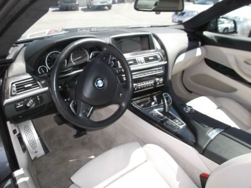 Gorgeous 2013 640i Coupe! An absolute thrill to drive and run by a powerful 315hp 3.0 liter Inline 6 Twin Turbo, an eight speed automatic transmission with manual overide and paddle shifters. Elegant and convenience features throughout including heated leather seats, heated steering wheel, power moonroof, 8 way power front seats, headlight washers, fog lights, premium stereo with navigation and 9 speakers.