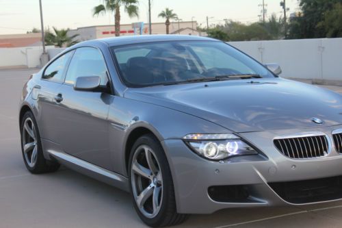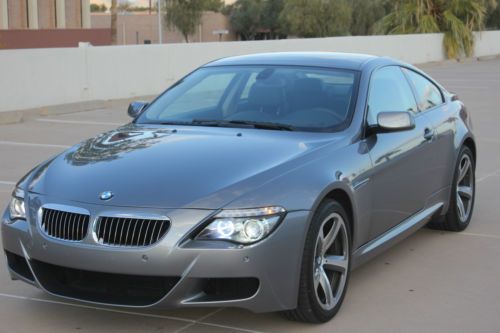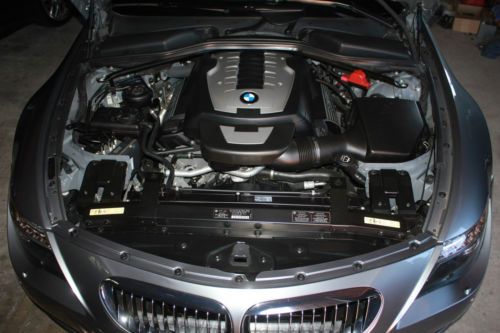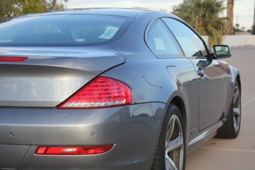 Features & Options Ext / Int Color Space Gray Metallic with Black Leather Interior Luxury Features Adaptable xenon headlights Air Conditioning Climate Control System Dual Zone Electronic Climate Control System Homelink System satellite radio 6 disc cd changer( in glove compartment) single cd front, DVD (front) NAV Heads Up Display with information (Adaptable) Dynamic drive, dynamic sway control Automatic, launch control, DTC, Sport button, and full Power to the wheels when ASC off (press the DTC button is continually pressed for 3 sec. Run Flat z rated tires 85-90% tread left front and back Steering Wheel options: Heated leather with Radio Controls and climate (adaptable)+ multi axis electronic telescope, Paddle shifters Cold weather package includes front seats and HEATED LEATHER Steering Wheel. Digital Information Center Adaptive Cruise Control Tilt Steering Wheel Dynamic Power Steering Power Windows Power Locks Power Mirrors Power Driver's Seat Power Passenger Seat Memory Seat and steering wheel Positions Safety Features Security System Keyless Entry Keyless start, (as long as the key is in your pocket or in the front compartment) Anti-Lock Brakes Traction Control System safety options: Transmission will go into park if you leave the car while it’s in drive. Driver's Air Bag Passenger Air Bag Right & Left side Door Airbags Knee AirBags A piller B piller Airbags Fog Lights Intermittent Wipers, with Automatic rain option (button) Interior: Wood Trim Heated Leather Steering Wheel w paddle shifters Premium Audio Package / Video Factory System AM/FM CD Player CD Changer Navigation System Premium Sound Reverse Camera Satellite Radio Additional Features Front Heated Seats Front and Rear Parking Sensors with display Premium Wheels Sport Seats Tire Pressure Monitor Glass Sunroof W tilt Engine: 363 hp 363 ft lbs Dual Vanos variable cam timing: intake and exhaust. & valvetronic : variable valve lift RESULT: near 30 MPG HWY (when driving prudent HWY Speeds… Performance: NEW Lemforder Front Upper Strut Tower Bushings Bearings - Lemforder control arms thrust arms and New Bilstein Front Shocks, Struts, (Coilovers) Space Gray Metallic 650i has implemented upgrades Enjoy the aggressive look of genuine BMW M6 front Bumper cover. An M6 Facelift ( Space Gray Metallic This vehicle is fully loaded with the most advanced technological features such as: HARMON KARDON LOGIC 7 SURROUND SOUND w CD ** FACTORY 19" SPORT WHEELS, SHADOWLINE EXTERIOR TRIM PKG,AUTOMATIC w PADDLE SHIFT ** NAVIGATION ** FACTORY SPORT PKG , BMW ASSIST w BLUETOOTH & SATELLITE RADIO Navigation, Harmon Kardon Speakers, Auto Climate Control, Air Ventilated Seats, COMFORT ACCESS/KEYLESS ENTRY PKG ** PARK DIST.CONTROL ** DARK BIRCH WOOD TRIM PKG ** HEATED SEATS ** ADAPTIVE LIGHT CONTROL and all other standard features. This vehicle has acquired a salvage title due to a very minor hit on its front end It has been professionally repaired and all parts were purchased from the BMW dealer. This 650i is in excellent condition and very clean (never smoked in) with about 27,232 miles on it. The vehicle is listed at a fraction of the MSRP and will not stay. It is truly a steal! If you are interested to come see the car and test drive it please contact us immediately. ADDITIONAL EQUIPMENT Space Gray Metallic 650i has implemented upgrades Enjoy the aggressive look of an M6 all while saving on the MPGs. Some of the customizations included were: An M6 Facelift (Has the M6 front Space Gray Metallic This vehicle is fully loaded with the most advanced technological features such as: HARMON KARDON LOGIC 7 SURROUND SOUND w CD ** FACTORY 19" SPORT WHEELS, SHADOWLINE EXTERIOR TRIM PKG,AUTOMATIC w PADDLE SHIFT ** NAVIGATION ** FACTORY SPORT PKG , BMW ASSIST w BLUETOOTH & SATELLITE RADIO Navigation, Harmon Kardon Speakers, Auto Climate Control, Air Ventilated Seats, COMFORT ACCESS/KEYLESS ENTRY PKG ** PARK DIST.CONTROL ** DARK BIRCH WOOD TRIM PKG ** HEATED SEATS ** ADAPTIVE LIGHT CONTROL and all other standard features. This vehicle has acquired a salvage title due to a very minor hit on its front end It has been professionally repaired and all parts were purchased from the BMW dealer. This 650i is in excellent condition and very clean (never smoked in) with about 27,250 miles on it. The vehicle is listed at a fraction of the MSRP and will not stay. It is truly a steal! If you are interested to come see the car and test drive it please contact me (602-695-3533 Bradley ADDITIONAL EQUIPMENT ZCWCold Weather PKG$750.00 heated leather steering wheel ski bag heated front seats ZSPSport PKG$3,900.00 19" x 8.5 front & 19" x 9.0" rear star spoke forged alloy wheels (style 249) P245/40R19 front & P275/35R19 rear performance tires sport seats shadowline exterior trim sport pkg ZPSPremium Sound PKG$2,000.00 6-disc CD changer premium hi-fi system iPod/USB adapter 2C719" X 8.5" FRONT, 19" X 9.0" Rear Star Spoke Cast Alloy Wheels (STYLE 218)$1,300.00 245/40R19 front & 275/35R19 rear performance tires 5ACAutomatic High Beams$250.00 655Satellite Radio$595.00 494Heated Front Seats$500.00 322Comfort Access Keyless Entry$1,000.00 610Head-Up Display$1,200.00 6-speed sport automatic transmission -inc: shift paddles 4.8L DOHC 32-valve V8 engine -inc: double-VANOS steplessly variable valve timing, Valvetronic Direct ignition system w/pencil coils throttle response, 3-setting max pwr level Aluminum block & cylinder heads Electronically controlled engine cooling Engine start/stop button Rear wheel drive Aluminum double-pivot front suspension Aluminum 4-link integral rear suspension Sport suspension Front/rear stabilizer bars Twin-tube gas-pressure shock absorbers Aluminum front/rear subframes Servotronic vehicle-speed-sensitive variable-ratio pwr steering 4-wheel vented disc brakes Dual stainless-steel exhaust tips Aluminum hood & doors Body-color front/rear bumpers Thermoplastic front side fenders Sheet molding compound (SMC) trunk lid Xenon automatic headlights -inc: dynamic auto-lev