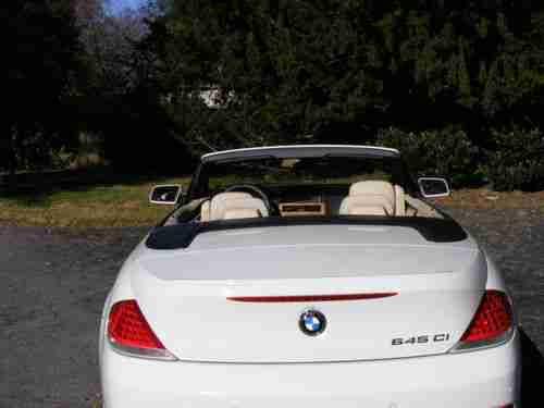 This is one beautiful car. Always garaged. Never seen snow. Xenons. Heated seats. Bluetooth. CD changer. Navigation. Goodyear Eagles. Most everything on this car is perfect or near perfect. Typical scratches on bottom off front spoiler (from parking curbs) but not noticeable unless underneath car. One small scratch in far lower right corner of info center screen, also hardly noticeable and does not obscure any info presentation. This one has the right wheels (not the teardrops) and no wheel rash. Six speed auto with Sport function.This is a no reserve auction, the car is for sale locally so please contact me before bidding ( shantel.smith@rocketmail.com ) my price is somewhere around 11k. Service records available . Every car has a color that accentuates beautiful lines, and white is THE color for the 645/650. This car turns lots of heads.
