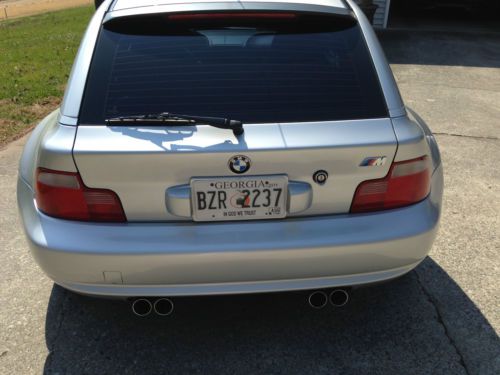 2000 TITANIUM SILVER OVER BLACK LEATHER, 100% STOCK, NON- MODIFIED M COUPE. EXCELLENT CONDITION, SMOKE FREE ENVIRONMENT...STILL SMELLS NEW!!. UP GRADED FLOOR AND TRUNK MATS, WELL MAINTAINED, GARAGE KEPT WITH ALL SERVICE RECORDS. WE'RE THE 2ND OWNER AND HAVE HAD THE VEHICLE ABOUT A YEAR. AWESOME CAR, FUN TO DRIVE, CLEAN ALL ORIGINAL CAR WITH ALL VIN'S. NO ACCIDENTS, NO PAINTWORK, NO WEAR AND TARE ON SEATS, NO ISSUES! FACTORY OPTIONS INCLUDE IN-DASH CD43 BUSINESS CLASS CD PLAYER, HARMON KARDON AUDIO, POWER SEATS, HEATED SEATS, POWER MOON ROOF, POWER WINDOWS AND LOCKS. THIS CAR IS SUPER CLEAN INSIDE AND OUT WITH NO MAJOR MARKS, SCRATCHES OR COSMETIC IMPERFECTIONS. FULLY INSPECTED AND SERVICED BY OUR BMW DEALERSHIP. NEVER BEEN RACED, TRACKED OR ABUSED. ADULT OWNED. ONLY 3 DRIVERS; 58 OR OLDER. FOR MORE INFORMATION PLEASE CALL TONY AT 706 980 0314