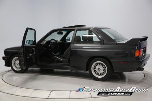 *New Arrival* Diamondschwarz on Black Leather, 100% Stock, Original, Well-Maintained E30 M3! All Original Body Panels! Very Rare 1991 Model Last Year of E30 M3 Production! One of only 271 M3's built for 1991 model year! This car is an honest + solid E30 M3 driver. Very few original condition examples left! Maintenance + Service Highlights within the last 3k miles include: R134A air conditioning retrofit with AC dryer, timing chain tensioner, alternator, valve adjustment, valve cover gasket, ignition rotor, distributor cap + spark plugs. Compression test recently completed (190, 190, 195 + 205 readings). Additionally, the radiator, thermostat and coolant hoses were replaced at 105k miles and water pump at 113k miles. Enthusiast Auto has completed Comprehensive Pre-Purchase Inspection and Work Order verifying the condition of this M3 as a Solid, Enjoyable Driver + Investment Vehicle. Service Highlights include front control arm bushings, sub-frame bushings, fuel filter, engine drive belts and reconditioned OEM 15" Basketweave wheels with new Yokohama S-Drive sport tires. Minor cosmetic flaws on front + rear bumpers, roof and left quarter panel, Enthusiast Auto Body has prepared an estimate to correct these cosmetic issue if desired. This E30 M3 is an excellent original condition E30 M3 and can be enjoyed in its current form. All aspects of Enthusiast Auto Body restoration services are available if the next owner wants to transform this E30 M3 into a garage queen. Mechanically, this car is fully serviced and ready to go! This M3 has No Accident History - All Original Body Panels with VIN Tags Present! Clean Vehicle History Report with No Issues. Non-Smoker. Please Call or email to obtain a Pre-Purchase Inspection Report, Build Sheet, Condition Related Details, Vehicle History and 50+ Detailed Photos; 513.554.1BMW (1269) www.EAGBMW.com Enthusiast Auto Group is a highly specialized automotive facility focused on late model BMWs. In addition to BMW sales, we offer precision automotive service and performance upgrades. Our pre-owned inventory is meticulously selected with the highest quality standards then thoroughly inspected and serviced by our master BMW technicians.