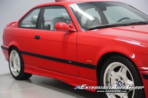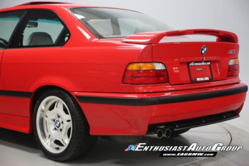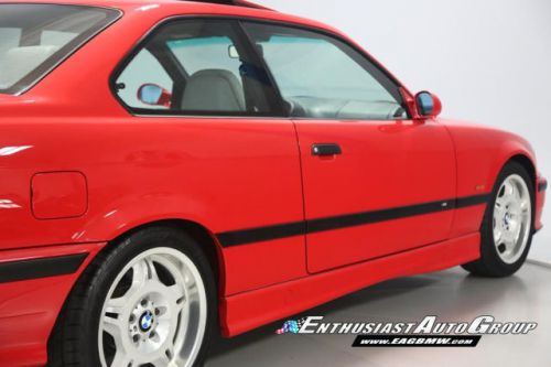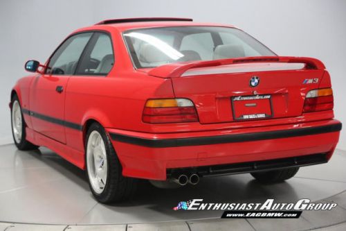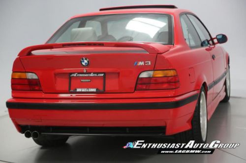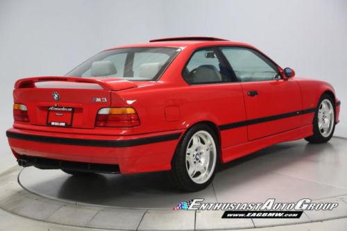 *New Arrival* Hellrot Red over Dove Grey Leather, Incredible Condition, Low-Mileage E36 M3 Coupe! All Original Paint + Body Panels with VIN Tags Intact! Factory Options Include: Power Seats, Cruise Control, 18-Button On-Board Computer, Automatic Climate Control, Harmon Kardon Audio, Keyless Entry with Alarm, Heated Front Seats, Power Sliding Sunroof, Side-Impact Airbags, Rear Headrests and Staggered Forged Lightweight Wheels. 100% stock condition with the exception of a Shark Power Programmer Engine Performance Tune. The stereo has also been upgraded with a Sony In-Dash CD Player with Auxiliary Audio Input and 6-Disc CD Changer. The condition of this vehicle is excellent inside + out! Never driven in inclement weather, therefore, the body + undercarriage is super clean. The exterior paint is all original and shows very well with very few blemishes! The interior is also very nice with supple leather, clean carpets and no visible wear areas. Enthusiast Auto Group has completed our Comprehensive Pre-Purchase Inspection will be completing our EAG Work Order ensuring this M3's mechanical integrity! Service Order Highlights Include a Complete 10-year Service which includes: engine oil + filter change, transmission fluid change, differential fluid change, coolant flush, brake fluid flush, power steering fluid flush, engine air filter, fuel filter replacement. 5th Gear Detent Replacement and Shift Linkage Rebuild. 5th gear detent, shift linkage rebuild, flex disc (guibo) + selector seal, power steering lines and reservoir, Preventative Suspension Updates Include: front control arm bushings, tie rod ends, front sway bar links, upgraded Rogue Engineering rear shock mounts, urethane rear trailing arm bushing and performed a 4-wheel alignment. This M3 has been owned by a responsible adult and been properly maintained with routine maintenance. This Hellrot Red M3 Coupe has a Clean Vehicle History with No Accidents + No Paintwork + No Issues. www.EAGBMW.com Enthusiast Auto Group is a highly specialized automotive facility focused on late model BMWs. In addition to BMW sales, we offer precision automotive service and performance upgrades. Our pre-owned inventory is meticulously selected with the highest quality standards then thoroughly inspected and serviced by our master BMW technicians.