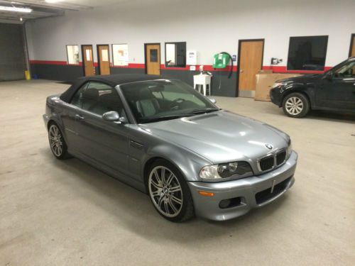 UP FOR SALE IS AN ADULT DRIVEN 2003 BMW M3 CONVERTIBLE WITH 69XXX MILES. REASON FOR SELLING JUST PURCHASED A BMW M6 CONVERTIBLE FOR THE SUMMER NEED SPACE IN MY GARAGE. THIS CAR IS IMMACULATE, AND HAS BEEN DEALER SERVICED UP TO 2012. BONE STOCK, NO MODIFICATIONS. RECENT SERVICE INCLUDES: NEW CLUTCH, PRESSURE PLATE, THROW OUT BEARING AND PILOT BEARING FRONT AND REAR BRAKE PADS SYNTHETIC OIL CHANGE CASTROL TWS 10W60 FLUIDS REPLACED IN TRANSMISSION AND DIFFERENTIAL DRIVE BELTS AND PULLEYS REPLACED TIRES HAVE 70%-80% TREAD LIFE (MICHELIN PILOT SPORTS) THERE IS A SCRATCH ON THE PASSENGER SIDE MIRROR AS WELL AS A DIME SIZED DENT ON THE DRIVERS DOOR OTHER THAN THAT IT IS COSMETICALLY FLAWLESS