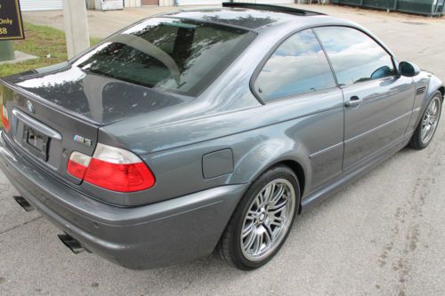 You are viewing an extremely attractive 2003 BMW M3 Coupe. Let me first say, this car is awesome! It runs and drive absolutely incredible. Tight, strong, crisp, powerful....one of the best driving and fastest performance coupes produced, and this example lives up to that billing. Its a joy and a thrill to drive, Day in--and Day out. While it has only 128,000 original miles (that's less than 11,500 miles per year), it drives more like one with 28,000 miles. That's right folks--that's what makes this an incredible opportunity. Normally, you don't see them this nice. Owner's abuse them, or use them as track cars. Not the case here. While this M3 Coupe (much more RARE than then M3 Convertible by the way) is an incredible performer, this one also has a couple mods that the owner tastefully did to it, making it even more awesome. It has a K&N high-flow air cleaner, and with the SMG transmission, this coupe is fast out of the gate, mid-range and top-end. All-around awesome performance. And let's talk about handling. The M3 handles great. Outstanding handling, turning and stopping...all while being one of the safest vehicles on the road today. BMW (in this case, the BMW M3) truly is the Ultimate Driving Machine. Exclusively Florida owned and driven since 2004, so there is not any rust or corrosion. No salt, no snow, blah, blah...the finish is brilliant and has a great shine. Being a Florida-only vehicle has its many benefits. Great finish and bodylines, but it does have a few nicks and chips in the paint, which you would expect for a vehicle this age. The exterior is Steel Grey Metallic and it free of any dents or unsightly parking lot door dings. It has both front and rear spoilers, and it gives it a great appearance, especially with the wide 18-inch factory aluminum/alloy wheels. You should be getting the picture. This is both a great driving, AND great looking performance coupe! Everyone that drives by you knows what it is. The performance is certainly not for the faint of heart. The Medium Grey leather interior is very good condition. no rips or tears, and the leather is in great shape. The Solar Ray tinted glass have really kept this Sport Interior very nice. It has an SMG transmission, so lots, and lots of fun to drive, while still being able to have your morning coffee or Espresso in the morning! Stainless Steel dual exhaust system. This BMW sounds great. A lot of power, as all of you already know if you are viewing this ad for this awesome sports car. It has a Aftermarket audio system with Harman Kardon speakers. Big, thunderous power and torque, and Formula 1 shifting to match, makes this the perfect car for street, track or strip. For those of you that want all the creature comforts of home, while driving one of the World's Most Renowned performance Coupes...your in luck. It has Heated Seats, Power Sunroof (with tilt feature as well as slide), Rear Back-up camera, Xenon high-intensity lighting, Parking Distance Control, etc, etc....it has it all. This is probably the best equipped M3 that you will ever find. In certainly one of the best color combinations that you could have ordered. And of course, this M3 has been completely serviced by the Pro's at the BMW dealership. It has recently been serviced and tuned. So, all the fluids are new, as well as the air filter and wipers. And the wheels are sharp. M3 aluminum wheels with Sumitomo performance uni-directional rubber. They are staggered, to offer better performance, as well as appearance. The size is 255/40ZR18 in the rear, and 225/45ZR18 in the front. Runs and drives and Sounds great! Very fast. Very Tight and in excellent condition. Of course, it has ice cold air conditioning and all of the power options, cruise control, sunroof...etc. all work properly. This has been a very well maintained M3 by someone that Loves cars! It shows throughout. These cars are becoming more and more rare. This is a great opportunity. We are running this auction for 7 days with NO RESERVE....that's right. One lucky and incredibly savvy individual will be getting the BMW M3 of their dreams! Please feel free to call or e-mail with any questions you have. You can call Steve at 561.283.9511 with any questions you may have, or a complete walk around the vehicle. He'll be happy to tell you all about this wonderful car. We have the clean Florida title in-hand and ready for immediate transfer. Of course, both Crystal Clean CarFax and AutoCheck Reports ensures a Florida-pedigree and an accident-free vehicle. No accidents or mishaps EVER! Of all the M3's available for sale in the US, they range in scores between 60-82...ours scored an ultra-impressive 86! How's that for peace of mind! Don't make this mistake of missing out on this rare find. This is the one that you have been waiting for on eBay. The latest September 2014 Edition of the NADA Used Car Guide shows the retail value of this exciting and perfectly-maintained performance coupe to be over $16,125...and certainly much more according to your friendly neighborhood BMW dealership, or local high-image Import Auto Boutique. Please call Steve if you have any questions. We charge a nominal $299 dealer fee and this M3 is in our showroom/warehouse in Jacksonville. If you fly in, we will gladly pick you up from the airport, or we have great transporters that we use and can ship Worldwide. Hugely powerful, intense and a real eye-catcher. Don't miss out on the bidding. Good Luck to everyone bidding. Bid with confidence and bid to win! |