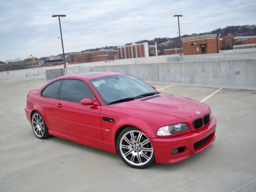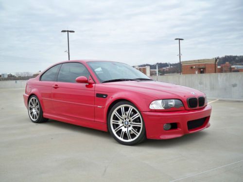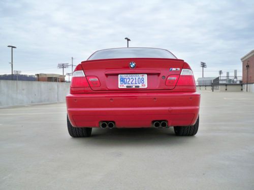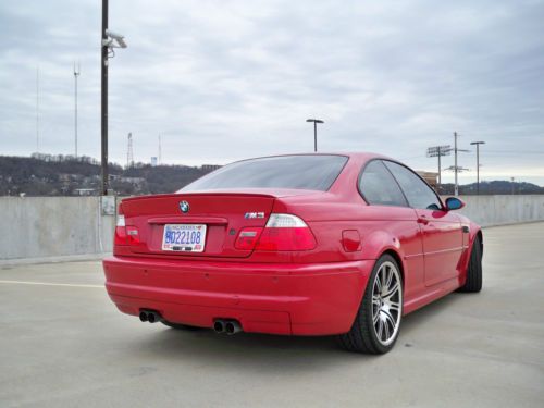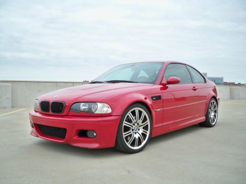 You're looking at a beautiful 2003 BMW ///M3 Coupe! Imola Red Exterior & Nappa Leather Interior Brief Description Car is originally from Atlanta, Georgia, and the previous owner had it in Anniston, Alabama for the past several years. The car is currently in Birmingham, Alabama and its been garage kept most of its life. I am the 3rd owner, and this car has never seen snow. 100% rust free. The car currently has 133k miles (mostly freeway). Considering that it has over a 100k miles, the car is in great shape inside and out. Leather has been cleaned and conditioned about 7 months ago using Gliptones formula. Exterior is washed and waxed monthly, and a full 10 hour detail every 6 months. I only hand polished when detailing the car to prevent any paint damage. Engine oil has been changed every 7000 miles using Castrol TWS (10w-60) only. Maintenance records available at request. This car has never been in a collision, non-smoker car. Specifications