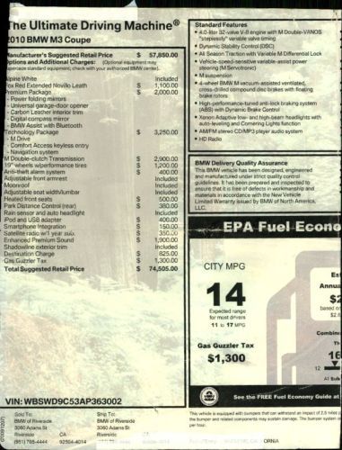 2010 E92 M3 Dct Loaded Still Under Factory Warranty Alpine White Red Fox Extende on 2040-cars