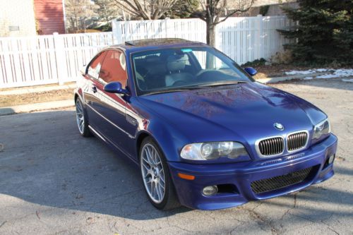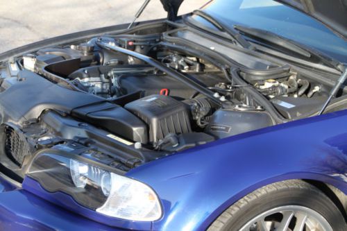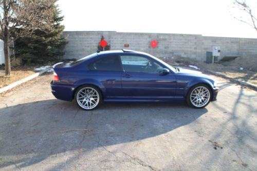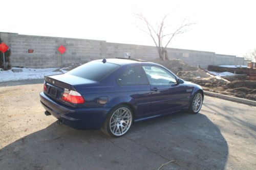This is a 2006 M3 Coupe ZCP (competition package), SMG transmission (the hydraulic pump has been replaced), interlagos blue and black leather interior. It has 119,000 miles on it…most of them are highway miles. The front part of the hood has a clear bra on it and the ENTIRE front bumper has a clear bra on it. If you pull the clear bra off, the paint will be in amazing shape. There are a few scratches on the bottom of the bumper, but besides this the paint is perfect and doesn't have any of the typical stone or rock chips because it has a clear bra on it. It also has a navigation system and 6 disc changer. It still has the books and DVD that came with it when it was purchased. It also has the original-unused IMS (instant mobility system and tire pump). It has newer rear tires, but the front tires will need to be replaced relatively soon. The brakes work VERY well on it and it has the oversized rotors because of the competition package. The transmission shifts great and the engine run The coveted competition pack includes -Cross-drilled brake rotors (enlarged to 13.7 inches in front) with two-piece compound rotors (aluminum hat and outer portion connected by steel pins) -Steering ratio reduced to 14.5:1 -M Track Mode setting for Dynamic Stability Control (raises—but does not eliminate—the threshold at which the DSC intervenes) -19-inch cross-spoke alloy wheels (8x19-inch front, 9.5x19-inch rear) -Alcantara-wrapped M three-spoke steering wheel with M Track Mode activation button (audio and cruise control buttons deleted) -Specific aluminum interior trim with milled effect -Exclusive Interlagos Blue metallic (A30) paint option that was only allowed for the competition package Motor Trend did a review on this package, it was in their May issue from 2005 and titled "First Test: 2005 BMW M3 Competition Package" It won't let me post the link, but you can view the article of you google that article or if you go to motortrend dot com/roadtests/sedans/112_0505_2005_bmw_m3_competition/viewall.html I'm selling this because I'm going to use the money to fund part of a business that I'm starting up and I would like some extra cash. So I'm not desperate to sell it, but I'm also not trying to get every last dollar out of it. I'm a BMW enthusiast and know it's not the easiest finding E46 M3 with the SMG transmission, Competition package, Interlagos Blue and black interior with a clean title....but I know it's not impossible to find another one (probably with lower miles). With that said, I am interested in a Lotus Elise or Exige and I would be interested in trading for one, but if a trade comes up I would really prefer not to be putting any money down. I do have it for sale locally, so if I get an offer locally I reserve the right to end the auction early. |