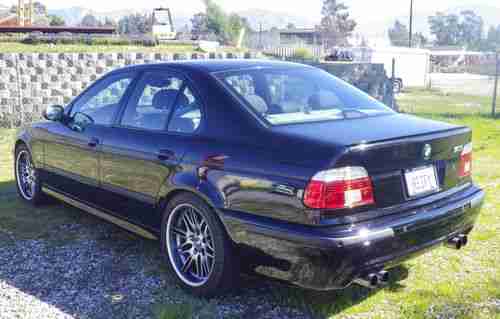 2002 BMW M5 - Fully Loaded Sport Sedan. Carbon-Black Metallic Exterior on Black Extended Nappa Leather Point Interior with wood trim. 5.0L V8 32 valve 400hp. 6-Speed Manual Transmission with Limited Slip Differential. Very Low Miles! (71,177 miles) Clean Title(in Hand). Dual Heated Power Front M Seats with 4-Way Adjustable Lumbar Support and Thigh Support, Rear Seats Fold Down. Power Tilt/Telescope Multifunction M Steering Wheel. Parking Sensors. Tire Pressure Monitor. BMW Navigation System (CA & NV Map Disc), 6-Disc CD Changer. This car is all original, unmodified and has been well taken care of, when not driven it has been garaged or covered, not abused, Adult Owned. Car is solid. Electronically and mechanically sound, everything works as originally intended. No dead pixels in displays. Overall paint condition is great. Interior leather is in OK condition. Some cracks. If you would like pictures I'd be happy to snap a few to show any issues. No Lowballing. No Joy Rides. Serious Inquiries Please. Thanks for Looking. California Car, just serviced and running great. Selling Because I simply don't drive it that much. |