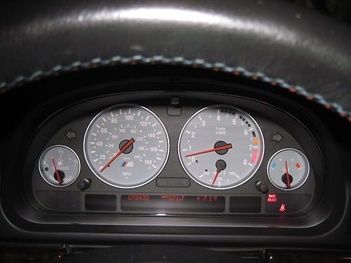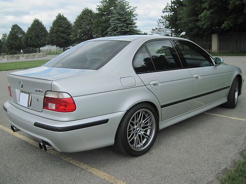 Selling my 2003 BMW M5, low miles, excellent condition. Three owner car, only serviced at BMW dealerships. Service records, manuals, window sticker. Paint, interior is excellent, always garaged, not driven in the winter, never raced, no pets, no smoking. All options except window shades and spoiler delete. iPod dock added by previous owner. Wheels are curb rash free, no wear marks anywhere. Clean Carfax.