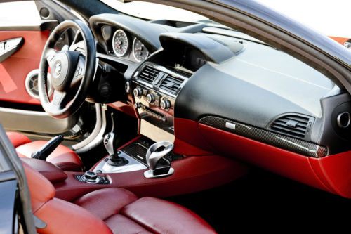Standard: 19” Double Spoke Wheels Carbon Fiber Roof Adaptive Xenon Headlights Adjustable Suspension Dampers 12-way Power Front Sport Seats with 2 Driver Memory Settings Dual-zone Automatic Climate Control Revised iDrive Interface With Hard-Drive-Based Navigation System Featuring Real-Time Traffic Updates 13-speaker Harman Kardon surround-sound audio system· 7-Speed single-clutch automated Sequential Manual Gearbox (SMG). Can be operated via wheel-mounted shift paddles, manual shift-lever manipulation or a full-automatic mode. · Multilevel stability control, antilock disc brakes, front-seat side airbags, and side curtain airbags. · Redlines @ 8,250 rpm. Good enough to satisfy any wannabe F1 drivers. · Immediate throttle response. Engine note is about as close to a real racecar soundtrack as you can get on the street. · And if that is not enough for you, the M6's front sport seats are among the best in the world, offering both excellent lateral support and drive-all-day comfort. Edgy. Absolute Dream Car. Fully Loaded. Super High-Tech Vehicle. Must see and drive to truly appreciate its beauty. Phenomenal Acceleration, Awesome Braking, Great Comfort, Precise Handling. Sweet Exhaust Note. A Real Drivers Car. Not For Wimps. |