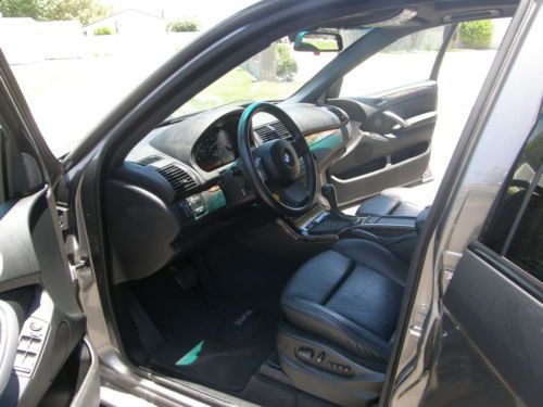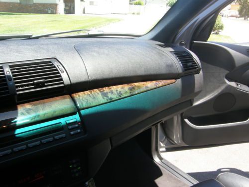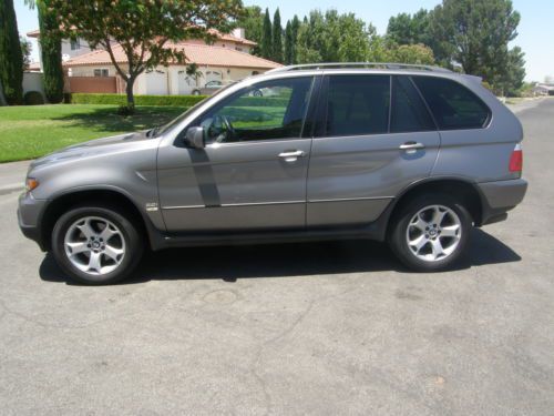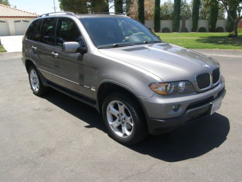 YOU ARE BIDDING ON A 2004 BMW X5 SPORT 3.0. THIS IS A (1 OWNER ) GARAGED KEPT , NON SMOKER , NON PET VEHICLE. THIS VEHICLE HAS BEEN MATICULOUSLY MAITAINED AT THE DEALER FROM DAY ONE. ALL MATINENCE HAS BEEN DONE ON A ROUTINE BASIS. THE SUV IS CHARCOLE SILVER METALLIC WITH A BLACK LEATHER INTERIOR. THE VEHICLE SHOWES LIKE NEW. THE BODY IS ALL ORIGINAL PAINT AND IN NEAR PERFECT CONDITION. THE INTERIOR IS LIKE NEW. THE SUV IS FULLEY LOADED WITH OPTIONS INCLUDING A PANORAMIC MOON ROOF. REAR DOORS HAVE THE SUN SCREENS. THE WHOLE ROOF OPENS UP (VERY COOL) IT HAS REAR A/C AND HEATING. PREMEUM SOUND. ALLOYS. TOW PACKAGE. ALL FACTORY MANUALS. SPARE IS STILL BRAND NEW. ROOF RACK. THIS SUV HAS IT ALL. IF YOU HAVE ANY QUESTIONS OR WOULD LIKE TO SEE TGHE VEHICLE CALL BOB @ 661-857-3245 CALIFORNIA RESIDENTS ARE RESPONSIBLE FOR DMV FEES AND TRANSFER |