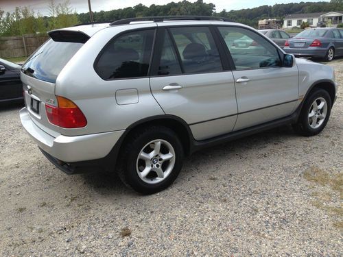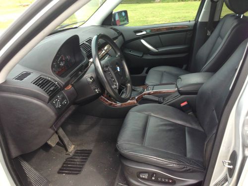 UP FOR SALE FROM A NEW CAR DEALER TRADE A OPPORTUNITY TO OWN A VERY DEPENDABLE AND WELL MAINTAINED SUV WITH WINTER RIGHT AROUND THE CORNER.THIS A 3 DAY AUCTION WITH A NO RESERVE BIDDING HIGH BID WIN. ASK YOUR QUESTION BEFORE YOU BID MAKE YOUR DECISION BEFORE YOU BID BECAUSE ONCE YOU BID IT I YOUR RESPONSIBILITY TO ACT HONORABLY IF YOU HAVE QUESTIONS THAT THE PICTURE OR DETAILS DON'T ANSWER FEEL FREE TO ASK AND WE WILL TRY TO GET YOU AN ANSWER WE ARE NOT RESPONSIBLE FOR MISPRINTS OVER LOOKS OR ANY MIX UPS YOU MAY HAVE HAD LOOK READ AND ASK.UP FOR SALE IS A 2003 BMW X 5 3.0 IN GREAT MECHANICAL CONDITION WITH NO ENGINE TRANSMISSION SUSPENSION OR DIFFERENTIAL PROBLEMS THE DOOR LOCKS DOESN'T RESPOND TO THE KEY YOU HAVE TO OPEN MANUALLY DOES START AND LOCK AND UNLOCK THE KEY PROPERLY JUST NOT REMOTELY NOT SURE WHY NOT.THIS X 5 IS DRESSED IN A BRILLIANT METALLIC SILVER THAT STILL HOLDS A BEAUTIFUL SHOWROOM SHINE THERE ARE VERY FEW BLEMISHES NO DENTS OR DING. TRIMMED INSIDE WITH BLACK LEATHER THAT STILL HOLDS GREAT COLOR NO RIPS OR TEARS OR STAINS CD PLAYER AM FM TAPE COLD AIR AND HOT HEAT POWER WINDOWS AND HEATED SEATS POWER SUNROOF ALL IN GOOD WORKING CONDITIONS TRIMMED IN MEDIUM BURLWOOD. SITTING ON 17 INCH ALLOY WHEELS AND THAT ARE MOUNTED ON A GOOD SET OF TIRES HAT TILL HAS MANY MILE LEFT.THIS X 5 CAME FROM A GOOD HOME AND HOW AND HAS MANY MORE MILES TO TRAVEL WITH NO MAJOR ISSUES IN SITE THIS IS A NICE ONE AND WILL SERVE SOMEONE VERY WELL.THERE IS A $200.00 ADMINISTRATION FEE IN ADDITION TO THE FINAL BID THAT WILL COVER AN COST INCURRED IN THE FINALIZATION OF THIS VEHICLE DETAIL AND CLERICAL WORK AS WELL AS A 60 DAY TEMP TAG AND REGISTRATION IF NEEDED.WE HAVE TRIED TO DESCRIBE THIS X5 AT OUR BEST ABILITY YO ARE FREE TO STOP IN AND TET DRIVE AND INSPECT THIS X 5 IS ALSO LISTED LOCALLY AND WE RESERVE THE RIGHT TO END AUCTION EARLY IF SOLD . GOD BLESS AND GOOD LUCK
