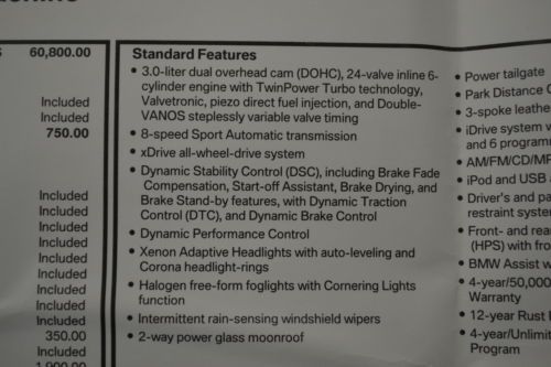 Xdrive35i 3.0l 3 liter inline 6 cylinder dohc engine 300 hp horsepower 4 doors