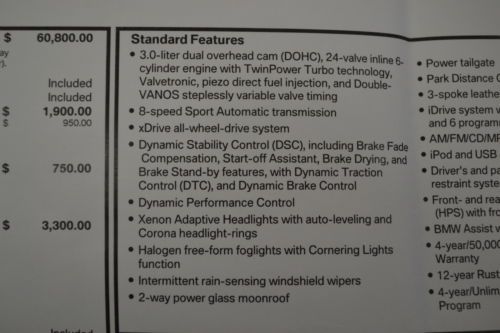 Xdrive35i 3.0l 3 liter inline 6 cylinder dohc engine 300 hp horsepower 4 doors