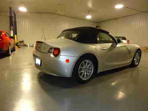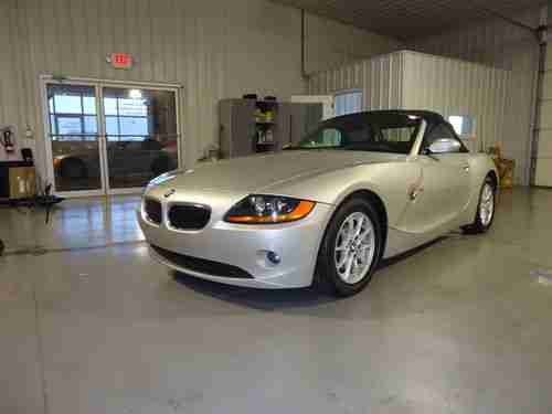 FOR AUCTION IS A 2003 BMW Z4 ROADSTER CONVERTIBLE WITH ONLY 28K MILES AND A ONE OWNER CAR. THIS CAR IS THE 2.5 LITER WITH THE AUTOMATIC TRANMISSION. THE CAR IS THE SILVER EXTERIOR WITH THE TWO TONE GRAY INTERIOR PACKAGE. THE CAR HAS ALL BOOKS AND BOTH KEYS. IT WAS OWNED BY A 60 YEAR OLD COUPLE AND THE WOMEN DROVE IT UNTIL SHE PASSSED AWAY LAST MONTH. THE CAR HAS ALWAYS BEEN GARAGED KEPT ITS ENTIRE LIFE. THE CAR JUST HAD NEW TIRES INSTALLED AND SERVICE THREE WEEKS AGO. EVERYTHING IS IN GREAT WORKING CONDITION. THE EXTERIOR IS CLEAN AND HAS NEVER HAD ANY PAINT WORK. THE CAR HAS ONE MINOR DING ON PASSENGER QUARTER PANEL AS SHOWN BUT VERY MINOR. THE INTERIOR IS IN GREAT CONDITION ALSO AND IS CLEAN AND WELL KEPT. THE CAR RUNS AND DRIVES GREAT AND IS READY TO DROP THE THE TOP AND GO. IT WOULD BE HARD TO FIND A CAR LIKE THIS WITH THESE LOW MILES AND CONDITION. PLEASE HAVE ALL THE FUNDS SECURED BEFORE BIDDING. PLEASE DO NOT BID UNLESS YOUR ABLE TO COMPLETE PURCHASE. WE CAN SHIP CAR ANYWHERE AT BUYERS EXPENSE BUT UNIT MUST BE PAID IN FULL BEFORE IT LEAVES. WE ALSO CAN DELIVERY THE CAR TO THE NASHVILLE TN AND LOUISVILLE KY AIRPORTS FOR BUYERS DAILY. FOR QUESTIONS EMAIL OR CALL ROB @ 270 634 1466 OR RON @ 270 634 0721. THANKS