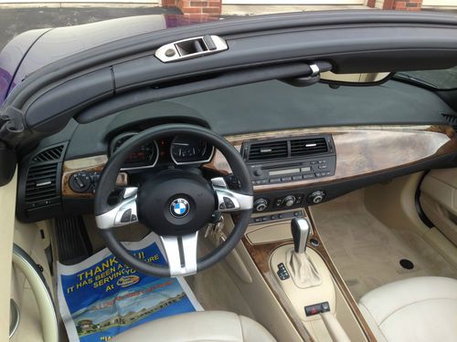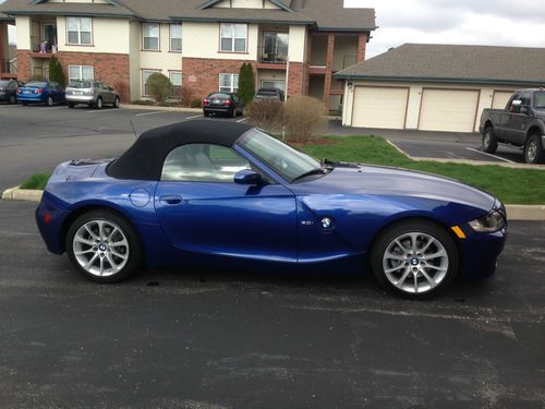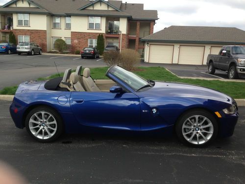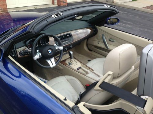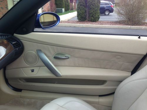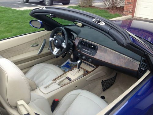 Very clean 2008 BMW Z4 3.0i. In addition to the factory standard features that come with this car, here are the additional factory options. (Prices from original sales sticker) Montage Blue Metalic $475 Beige Leather $1150 Premium Package $3550 Fully automatic soft top Auto dimming mirrors Power front seats Automatic heating/air conditioning BMW assist w/ bluetooth system Steptronic Automatic Transmission $1275 Heated Seats $600 Car has standard features such as premium wheels with performance tires, fog lights, rain sensor wipers, 10 speaker premium sound system, wood trim and cruise control. Changed the oil at the BMW dealership in March. Good for the next 15,000 miles. Car is in very sound mechanical condition and beautiful cosmetically. I purchased the car last year for my wife from a local BMW dealership as a factory certified pre owned vehicle. Currently just over 48,000 miles on the car. I personally knew the individual who purchased this car new. Neither myself nor the original owner drove the car in the winter. Stored inside a garage between November 1 and March 15. Any questions please don't hesitate to call or email. Thank you.