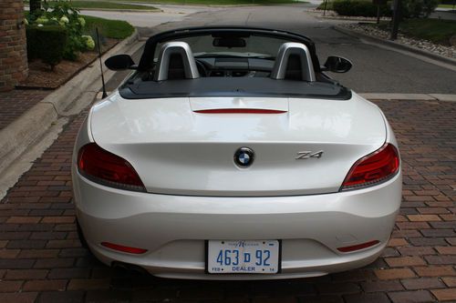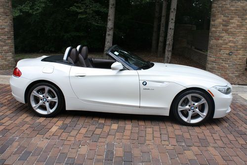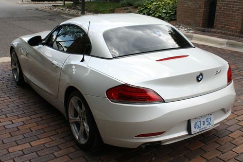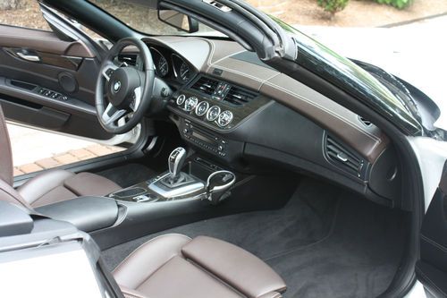 You are viewing a Gorgeous Gorgeous and diamond white EXTERIOR matched with a dark brown leather interior 2012BMW z4 sdrive 28i TWIN-TURBO in immaculate condition .... Gorgeous car!!!!!!!!--The dark brown interior is a premium over any other interior and is a $3,100 option.. .....Only 5,900 mile................Paddle shifters which let you drive this amazing beauty in pure manual mode and are situated behind the steering wheel............WIN-TURBO CHARGED engine with composite magnesium/aluminum engine 2.0L 1997CC 121Cu. In. l4 GAS DOHC Turbochargedlock,............VOICE ACTIVATED with gorgeous sky views and linked to all your ipod gadgets and is beautifully..........Am/fm/cd........Power windows......Power mirrors.......Keyless Entry.......Push Button Start.......GORGEOUS WOODGRAIN INTERIOR TRIM PACKAGE..….RAIN SENSING WINDSHILED WIPERS which is camera based behind the windshield which senses any drop of rain and automatically activates wipers.................Leather wrapped steering wheel.........BMW premium sound.....GORGEOUS 18" M SPORT wheels with superb tire tread remaining and only come on the high end z4 ..............Premium ADAPTIVE XENON headlights which swivel to your steering wheels every turn and are a great night safety feature.. .......... Beautiful SPORT EDITION dark brown LEATHER SEATS in new factory condition and include the very hard to find retractable thigh support (see pics)...............Cruise control........Stability control.........Steering wheel controls..........This vehicle is in superb condition and looks GREAT!!!..In awesome awesome shape!!!!..........Absolute gorgeous color combo and is a must on any BMW and just plain looks amazing!!!!....You must feel the power of this beauty to beleive!!!!