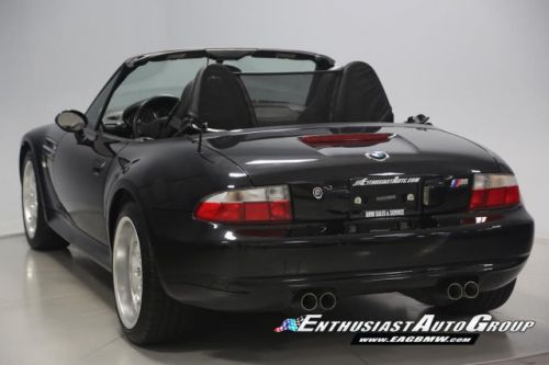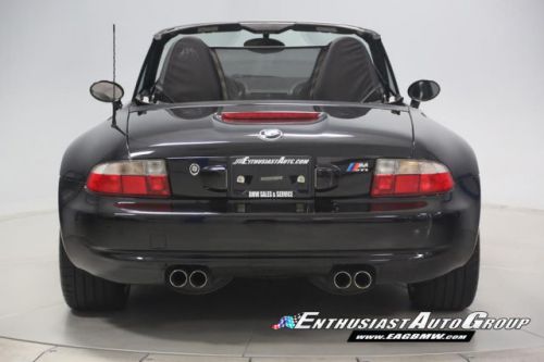 *Arriving Soon Repeat Visitor* Cosmos Black and Black Leather Interior, Black Soft Top, Very Clean, Stock S52 M Roadster! This car is All Original in Every Way! Factory Options Include Power Seats, Power Convertible Top, Heated Seats, Cruise Control, Harman Kardon Audio, CD43 In-Dash CD Player, Keyless Entry with Alarm and Power Everything! All-Original Paint in Excellent Condition! The interior is also very nice without flaw! This car has an upgraded stereo with JL Audio Amplifier + 10" JL Audio Subwoofer with external bass controller. Enthusiast Auto has completed a Comprehensive Pre-Purchase Inspection and is completing our Work Order ensuring this M Roadster is a turn-key, needs-nothing car! Service Order Highlights Include a Complete 10-year Service which includes: Engine Oil + Filter Change, Transmission Fluid Change, Differential Fluid Change, Coolant Flush, Brake Fluid Flush, Power Steering Fluid Flush, Engine Air Filter and Fuel Filter Replacement. Both Seat Bushings Replaced with Upgraded Whalen Bushings. Recently replaced Michelin Pilot Super Sport tires. Complete Car with All Keys, Books, + Manuals. Clean Vehicle History Report with No Issues No Complaints! All original body panels with all VIN tags intact. Responsible Adult Owned + Pampered. Serious Inquiries from US Residents Only - Exportation of EAG cars breaks our strict buy-back policy. Please Call or email to obtain a Pre-Purchase Inspection Report, Build Sheet, Condition Related Details, Vehicle History and 100+ Detailed Photos; 513.554.1BMW (1269) www.EAGBMW.com Enthusiast Auto Group is a highly specialized automotive facility focused on late model BMWs. In addition to BMW sales, we offer precision automotive service and performance upgrades. Our pre-owned inventory is meticulously selected with the highest quality standards then thoroughly inspected and serviced by our master BMW technicians.